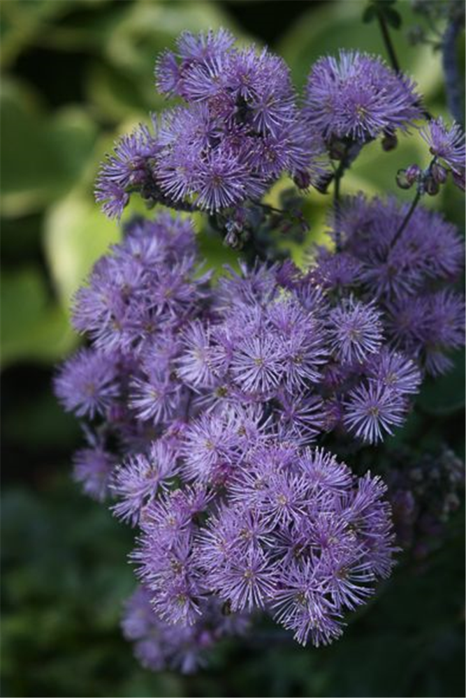 Thalictrum aquilegifolium bildet in Rispen angeordnete, rosafarbene Blüten ab Mai.