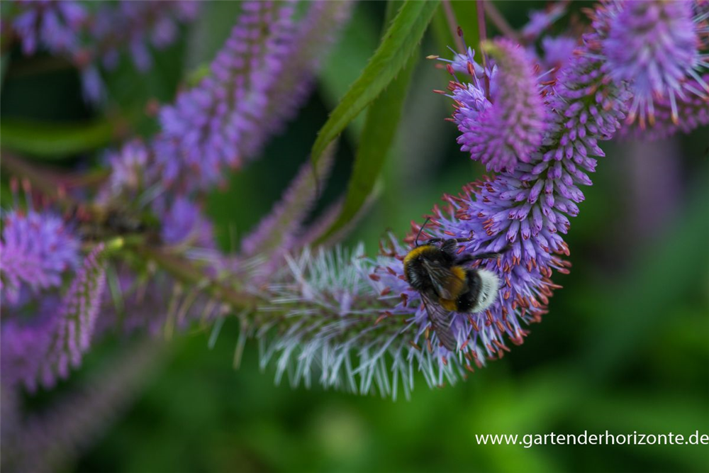 BlüteVeronicastrum sibiricum 'Apollo' bildet in Ähren angeordnete, lilafarbene Blüten ab Juni.