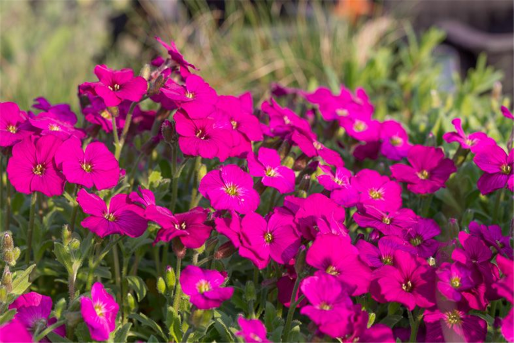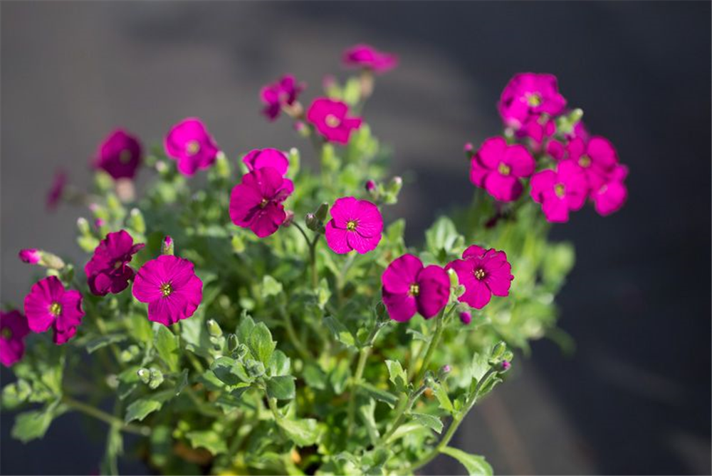 BlüteAubrieta x cultorum 'Regado Red' bildet radförmige, purpurrote Blüten ab April.