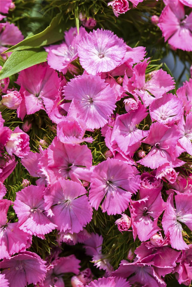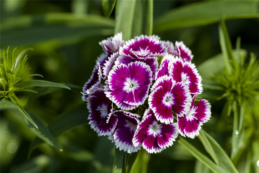 BlüteDianthus barbatus bildet radförmige, weiße, rosafarbene, rote Blüten ab Juni. Diese verströmen einen angenehmen Duft.