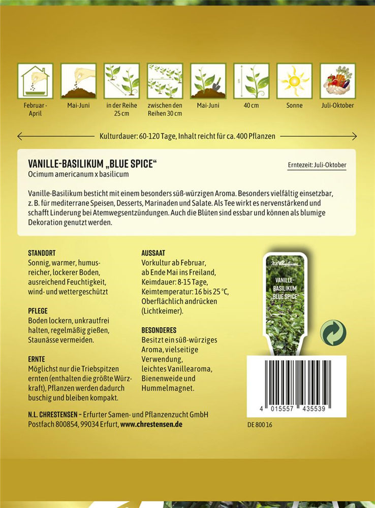 SynonymeBasilikum 'Blue Spice' ist auch unter diesem Namen bekannt: Königskraut oder Vanille-Basilikum