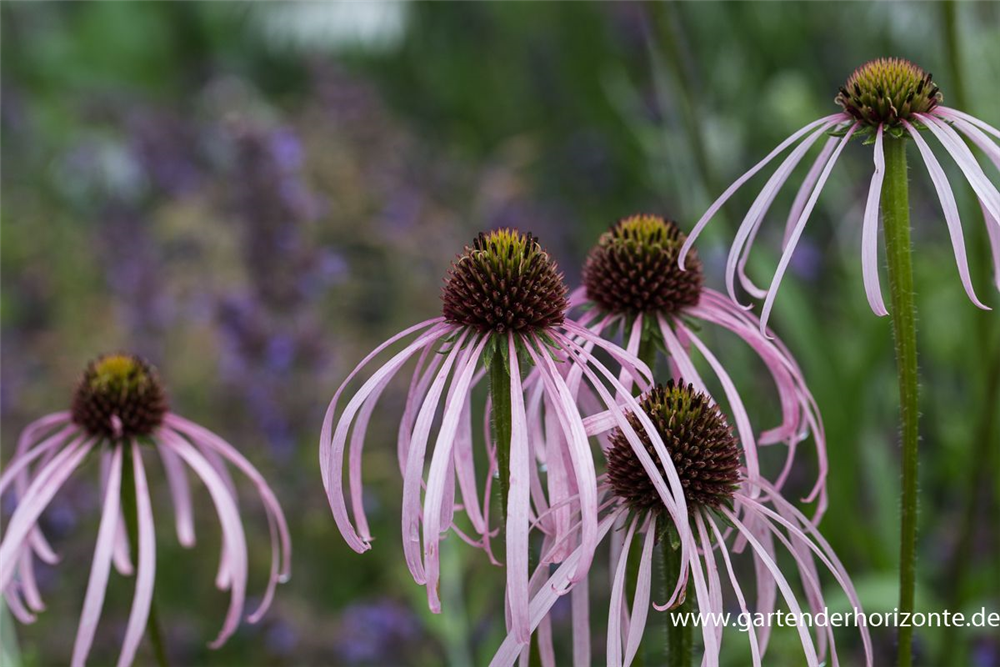 Der Bleiche Scheinsonnenhut (Echinacea pallida) ist eine aufrechte Staude, die von Juni bis Juli weiß-rosafarbene, körbchenartige Blüten bildet. An einem sonnigen Standort mit durchlässigem, nährstoffreichem Boden erreicht er gewöhnlich eine Höhe von ca. 80 cm und wird ca. 40 cm breit. Der Bleiche Scheinsonnenhut ist gut frostverträglich.