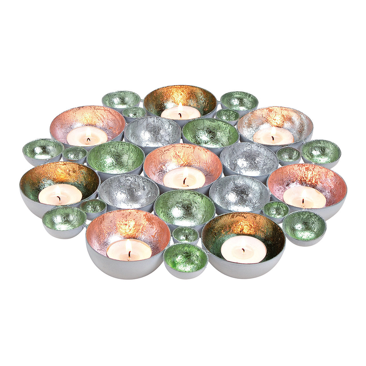 Metal bowl/candle holder in Pink/Rose Turquoise, (W/H/D) 30x4x30cm. Color: Pink/Rose, Material: Metal. Origin: IN. Product safety data sheet: [link].