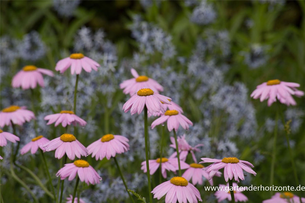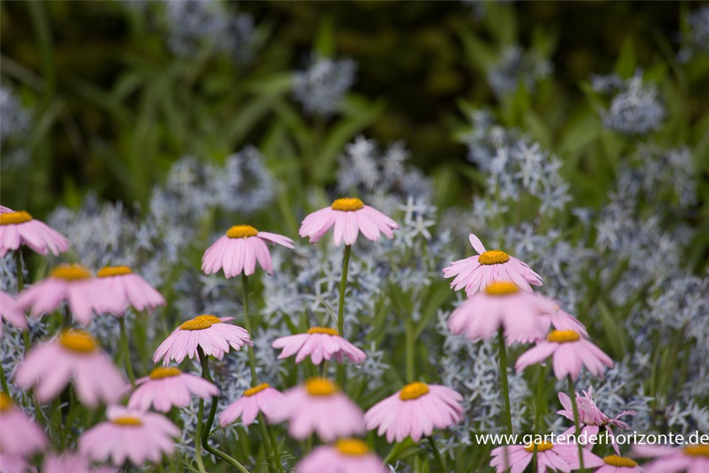 Die Bunte Garten-Margerite 'Robinsons Rosa' setzt schöne Akzente gemeinsam mit: