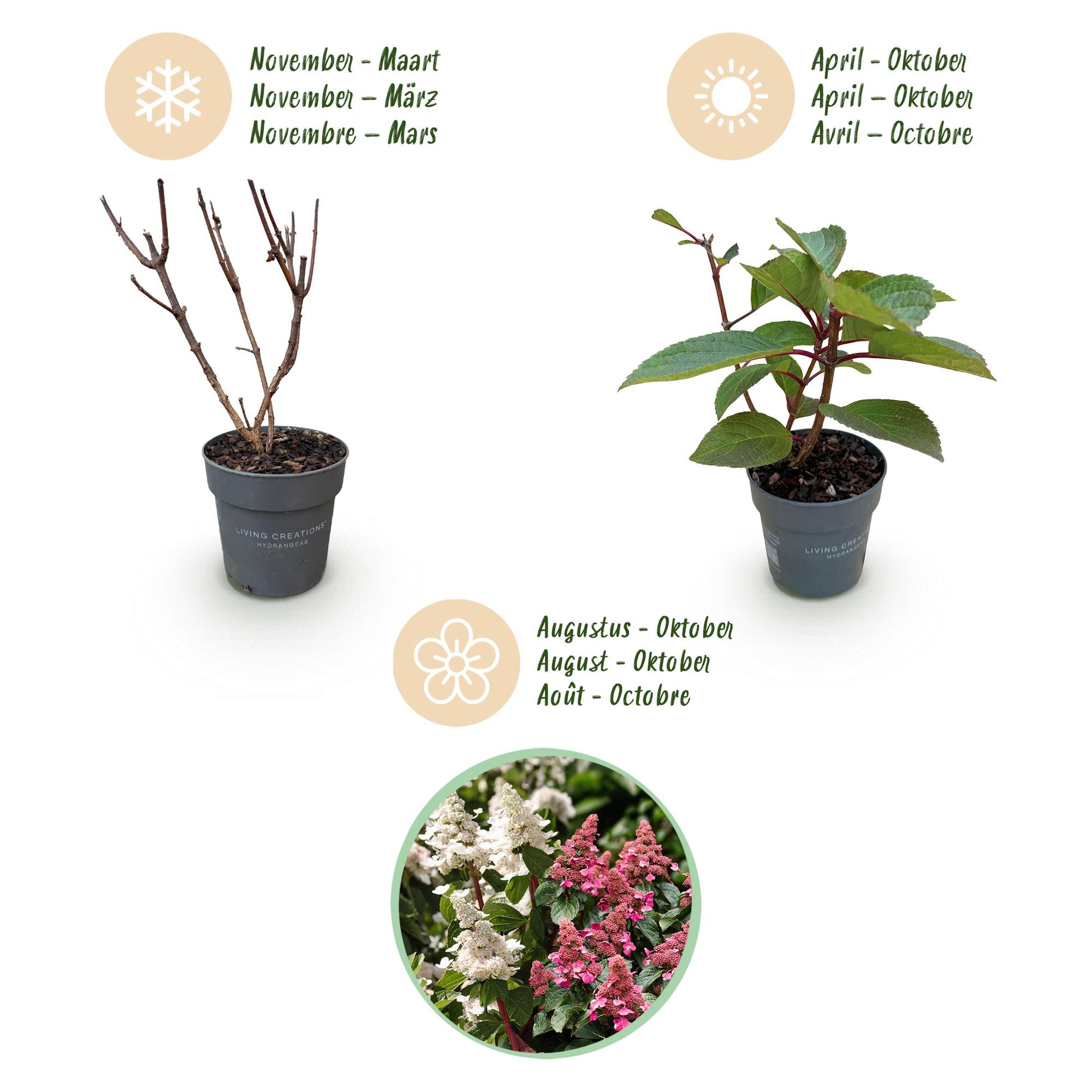 Hydrangea panniculata Living Infinity - Rispenhortensie - Winterhart - Weiß - 3 Pflanzen - Topf 12cm - Höhe 20-30cm