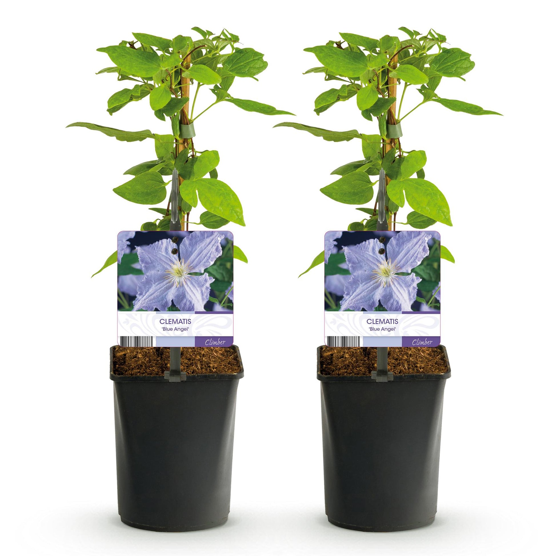 Kletterpflanze - Clematis Blue Angel - Blüte Licht Blau - Wenig Pflege - 2 Pflanzen - Topf 11cm Höhe 40cm