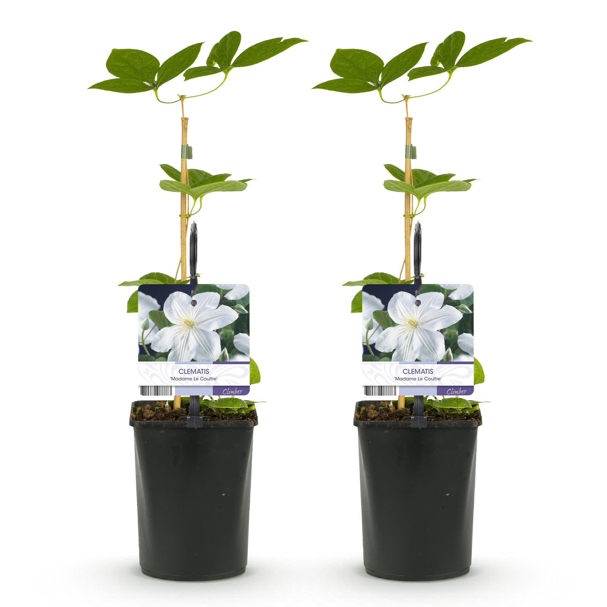 Kletterpflanze - Clematis Madame Le Coultre - blühend weiß - Wenig Pflege - 2 Pflanzen - Topf 11cm Höhe 40cm