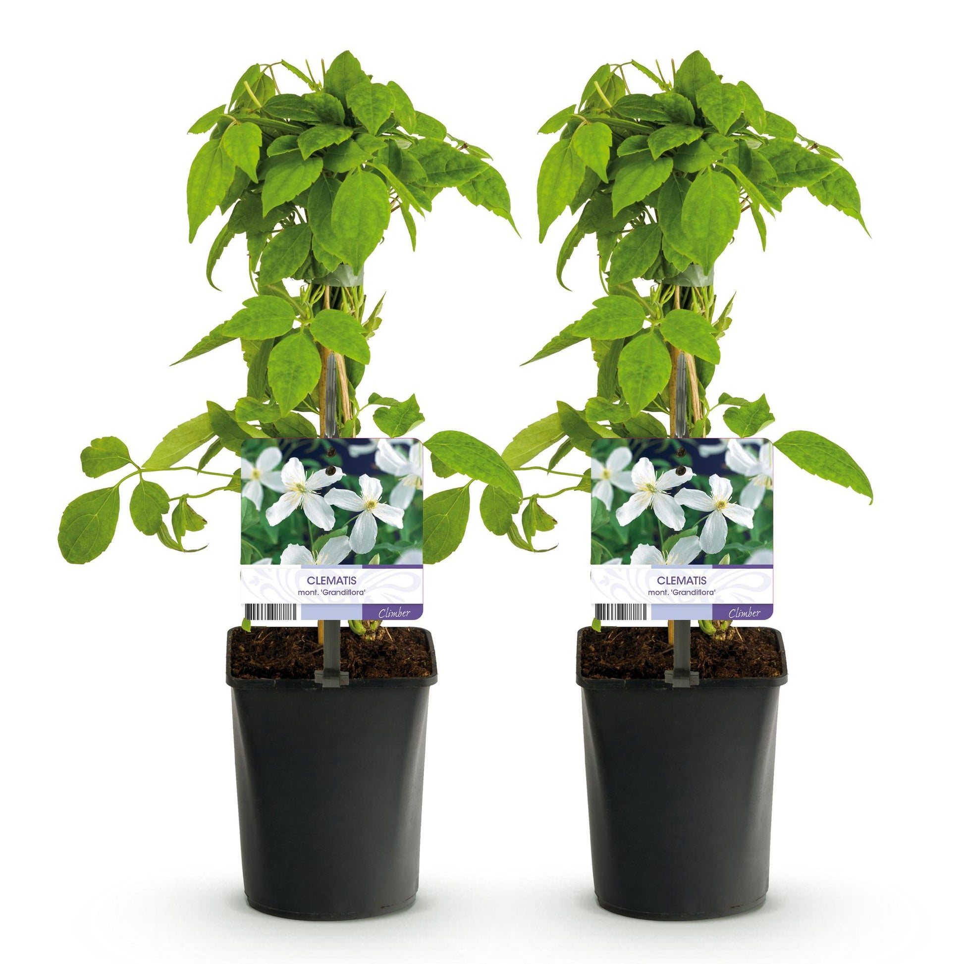 Kletterpflanze - Clematis montana Grandiflora - Blüte Weiß - Frühblühend - Pflegeleicht - 2 Pflanzen - Topf 11cm Höhe 40cm