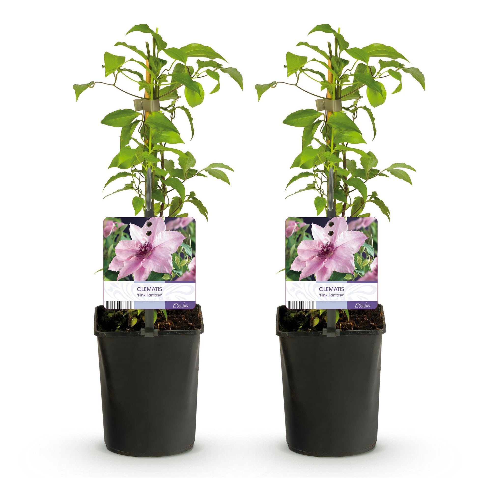 Kletterpflanze - Clematis Pink Fantasy - Blüte Rosa - Wenig Pflege - 2 Pflanzen - Topf 11cm Höhe 40cm