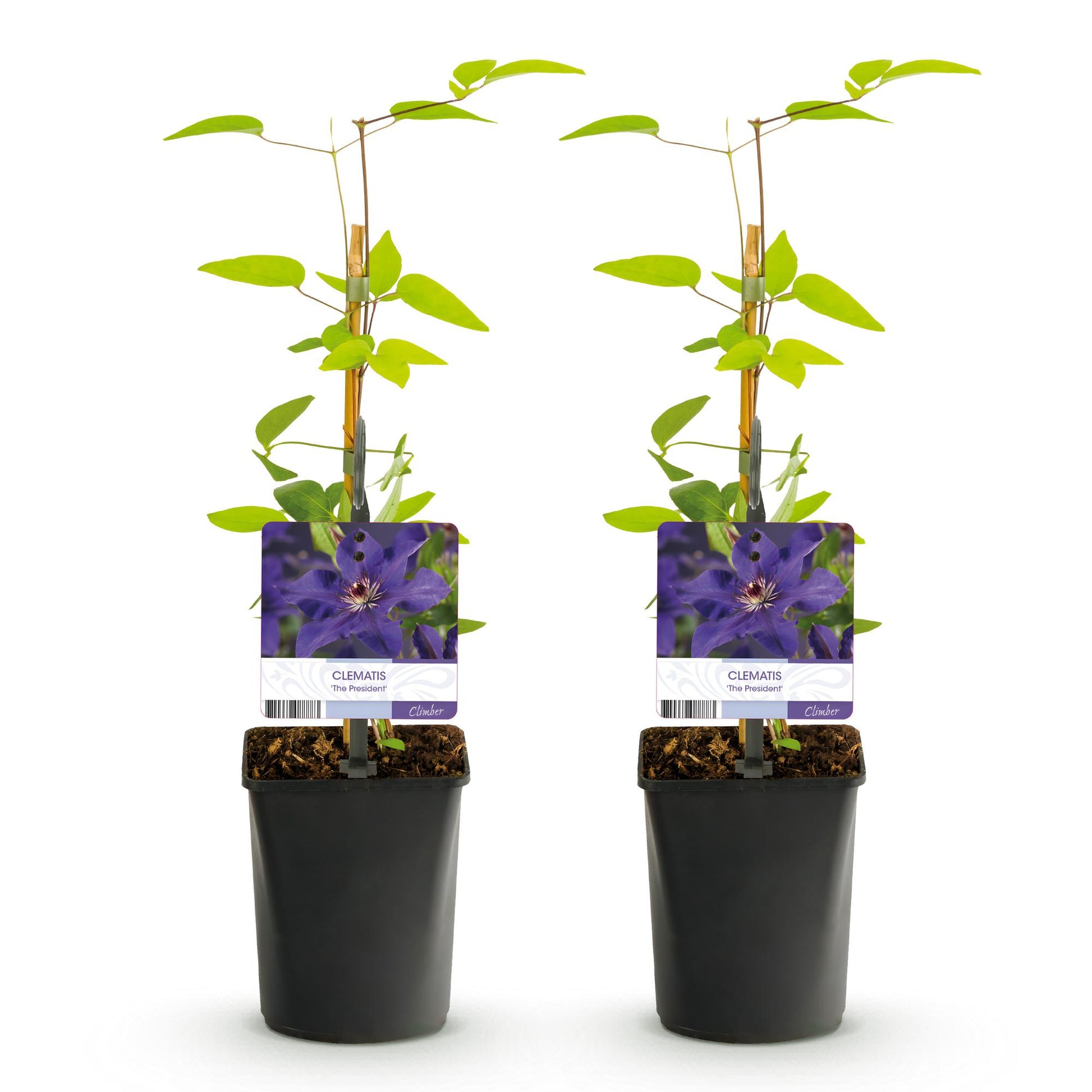 Clematis The President is een prachtige klimplant met opvallende, grote paarse bloemen. Deze plant is ideaal voor het versieren van tuinen, pergola's en hekken. De bloemen bloeien van juni tot september en hebben een heerlijke geur. Deze clematis is gemakkelijk te onderhouden en kan zowel in de zon als in de halfschaduw worden geplaatst.