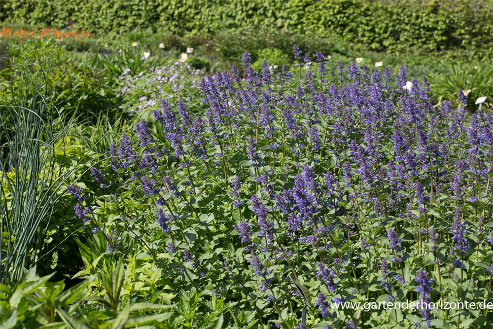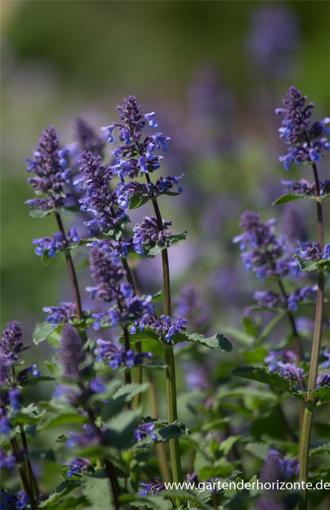 Nepeta grandiflora 'Zinsers Giant' bildet lippenförmige, in Quirlen angeordnete, violette Blüten ab Mai. Bei richtiger Pflege Nachblüte im September.