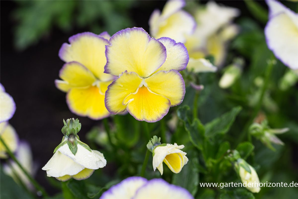 Zum Verzehr geeignet. Viola cornuta 'Etain' bildet lippenförmige, mehrfarbige Blüten ab April. Diese verströmen einen angenehmen Duft. Bei richtiger Pflege Nachblüte von September bis Oktober.