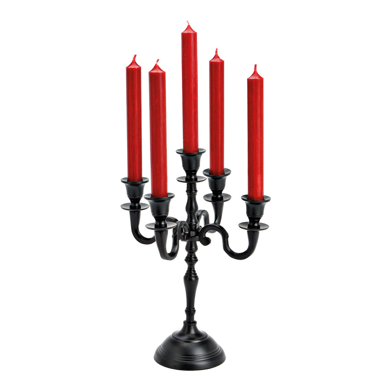 5-armiger Kerzenhalter aus schwarzem Metall (B/H/T) 23x31x23 cm. Farbe: Schwarz, Material: Metall, Ursprungsland: CN. Produktsicherheitsdatenblatt: https://nextcloud.wurm.com/apps/psds/Documents/10034090.pdf.