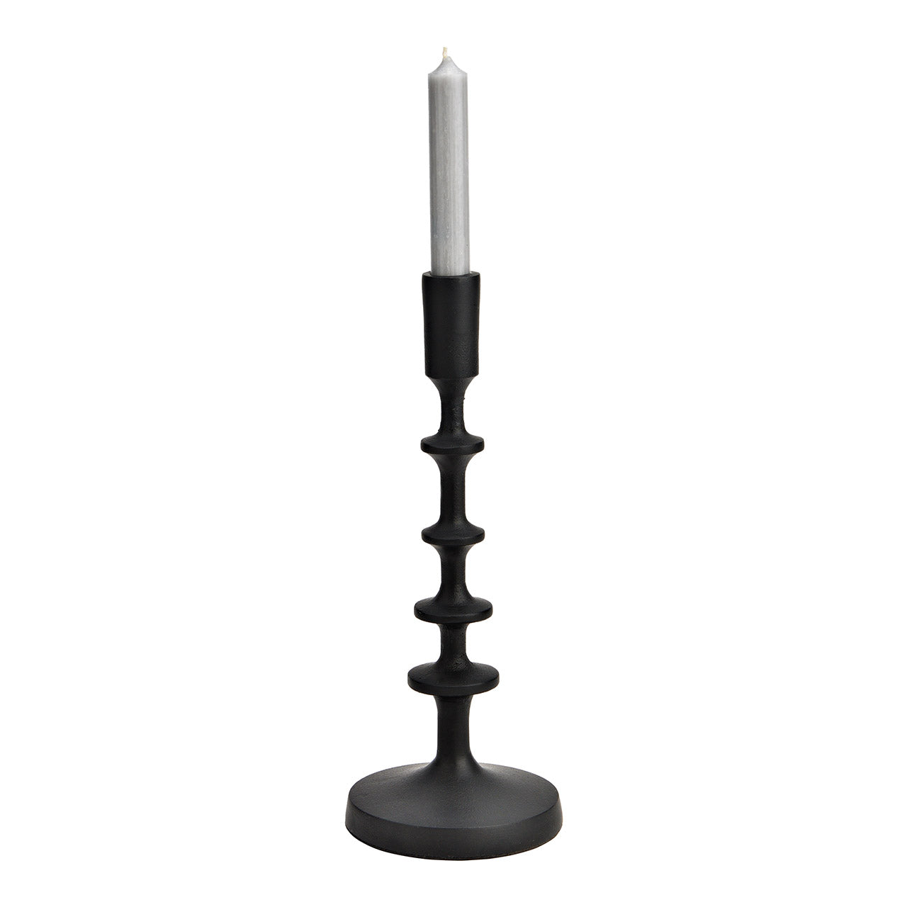 Elegant metallischer Kerzenhalter in Schwarz (B/H/T) 12x32x12 cm.