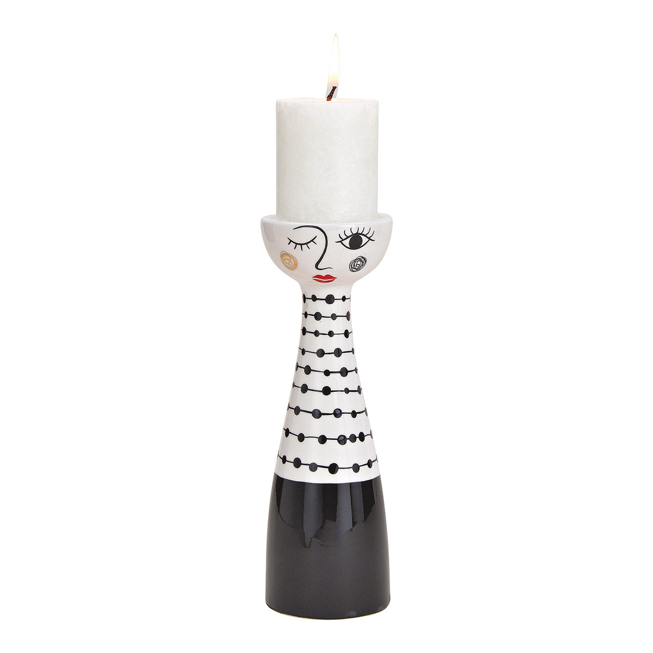 Kerzenhalter Frau aus Keramik Schwarz, weiß (B/H/T) 8x25x8cm