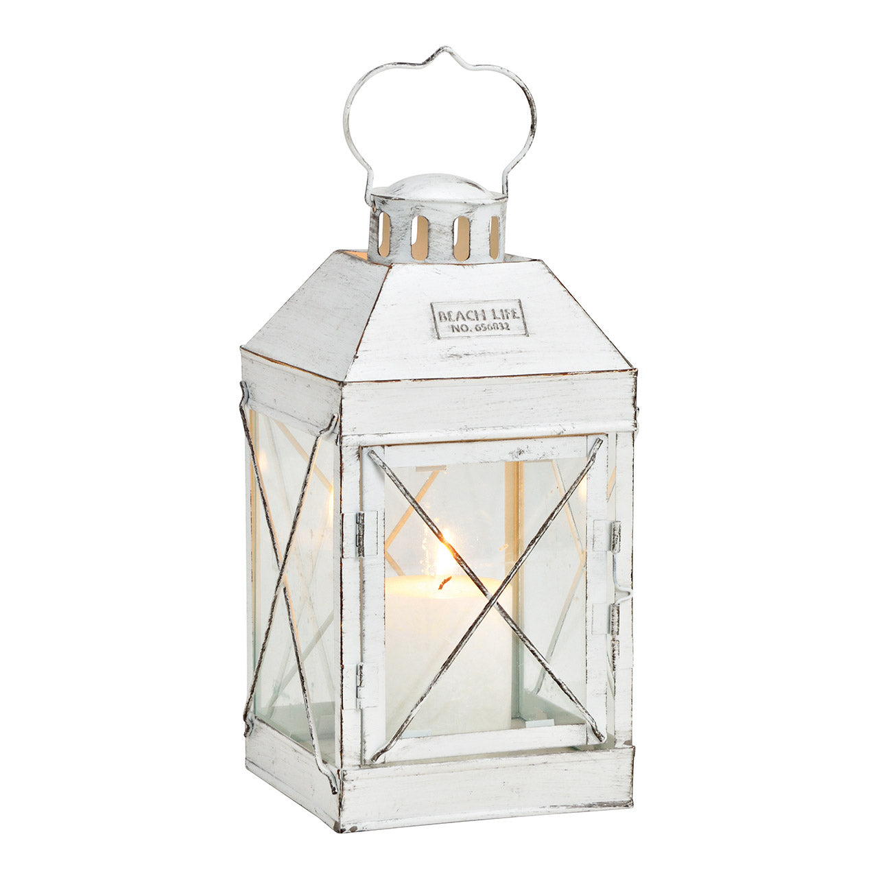 White metal/glass lantern, B14 x D14 x H27 cm. Color: White, Material: Glass. Country of Origin: CN. Product safety data sheet: [Link]. German: Weiße Metall/Glas Laterne, B14 x T14 x H27 cm. Farbe: Weiß, Material: Glas. Herkunftsland: CN. Produktsicherheitsdatenblatt: [Link].