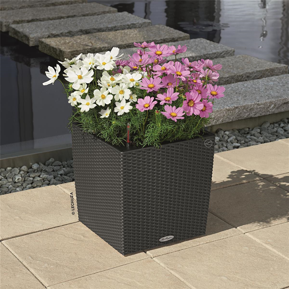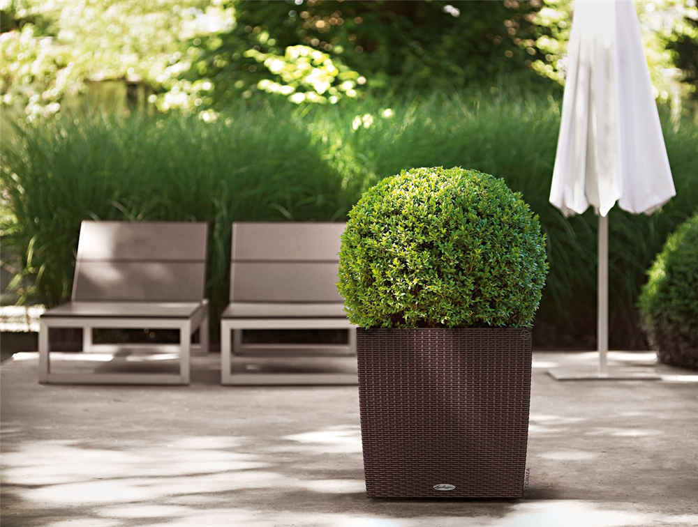 Pflanzgefäße in natürlicher Cottage-Flechtoptik sorgen für einen stimmigen Look. Sie sind dank des smarten Bewässerungssystem, der herausnehmbaren Pflanzeinsätze und der integrierten Überlauffunktion bestens für die Outdoor-Saison geeignet. So nimmt die Gartenpflege dank LECHUZA nicht überhand und die Entspannung ist garantiert.