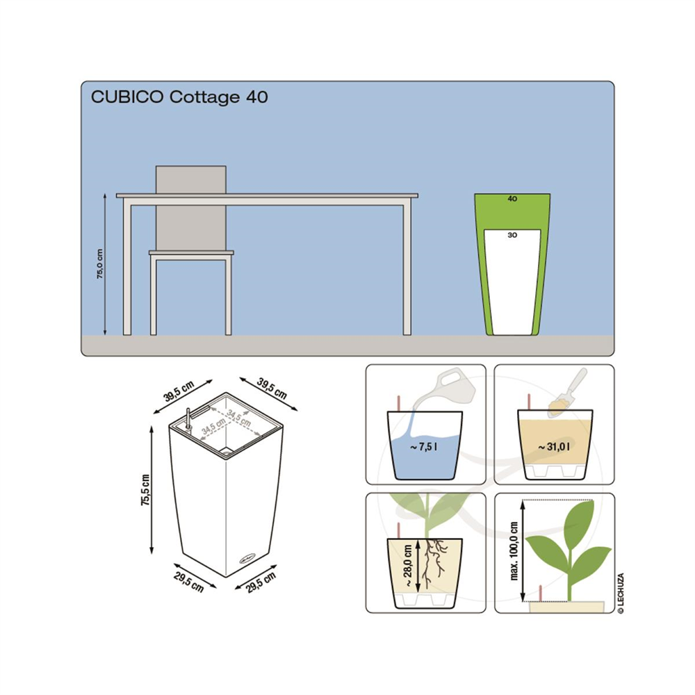 Die feine Flechtstruktur der Gefäße aus der Cottage-Collection bietet vielfältige Einsatzmöglichkeiten auf der Terrasse oder im Garten. Mit dem Original LECHUZA Bewässerungssystem, dem herausnehmbaren Pflanzeinsatz,der integrierten Überlauffunktion und den robusten Oberflächen sind die Gefäße der Cottage Collection ideale Partner für die Gartensaison im Outdoor-Bereich. Die farbneutralen, herausnehmbaren Pflanzeinsätze können mit allen CUBICO-Modellen in derselben Größe ausgetauscht werden.