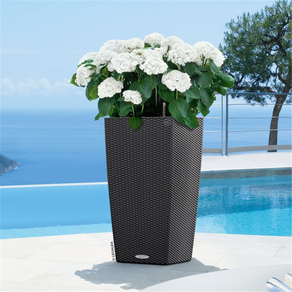 Mit einer natürlichen Flechtstruktur-Oberfläche verbreitet CUBICO Cottage rustikales Landhaus-Feeling. Der LECHUZA-Klassiker im Country Style setzt einzelne Blühpflanzen oder üppige Arrangements gekonnt in Szene – ab einer Höhe von 65 cm werden sie zum Blickfang im Außenbereich.
