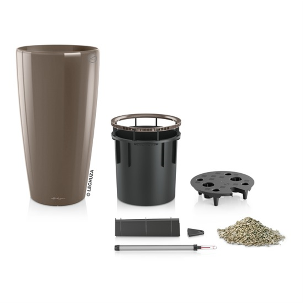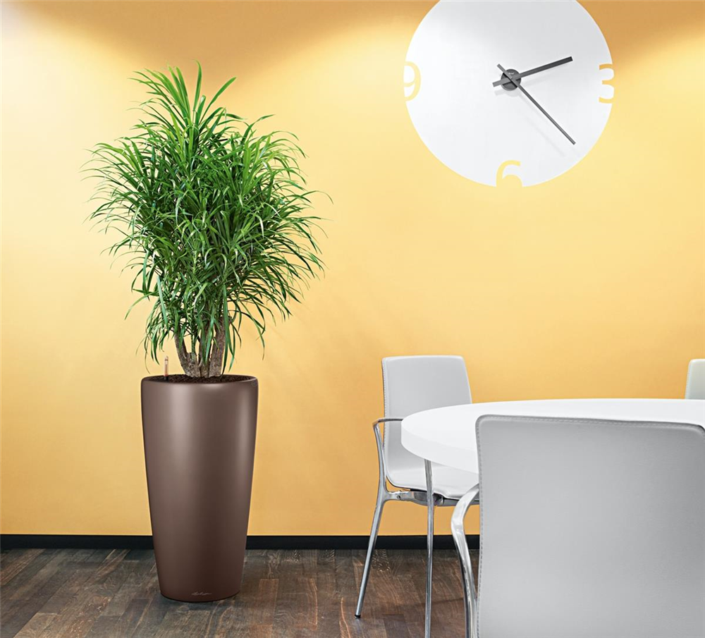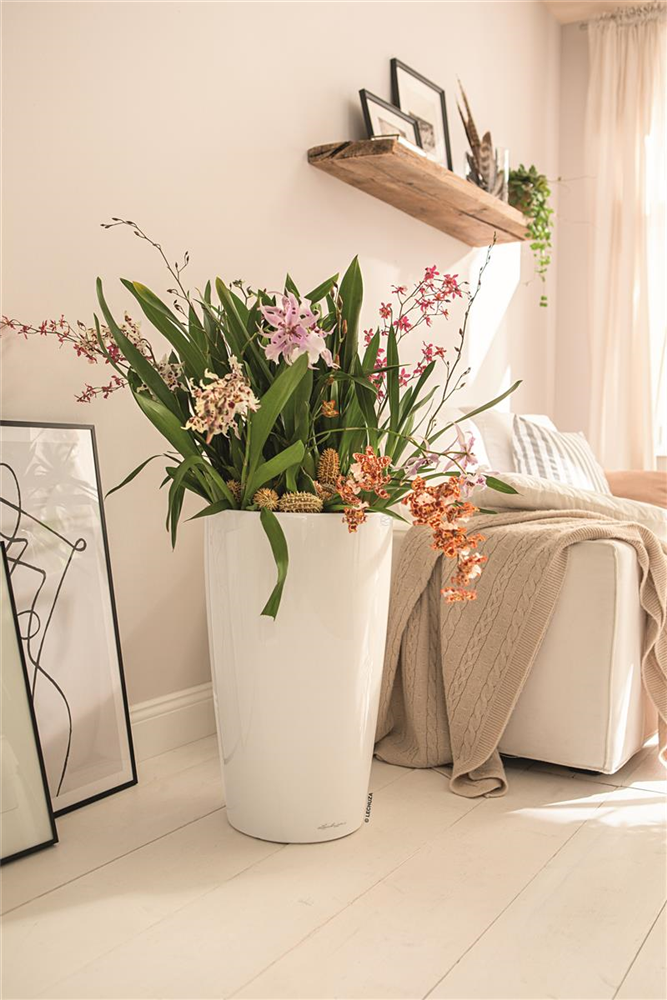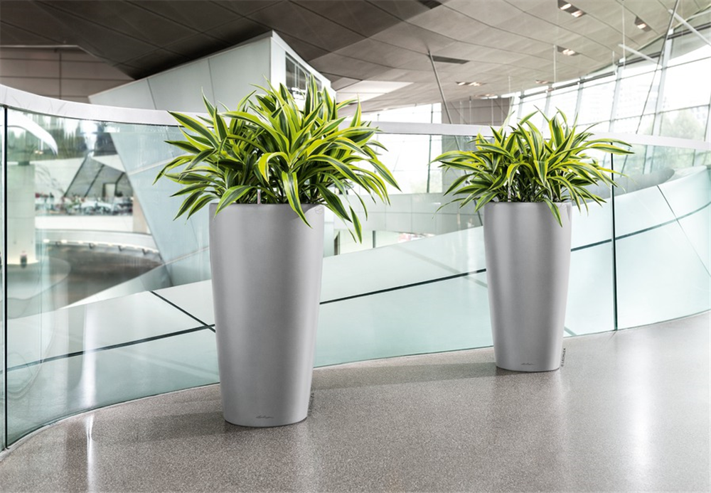 Die klassische Form des grazilen Pflanzgefäßes RONDO bringt Pflanzen optimal zur Geltung und rückt sie ins beste Licht. Skulpturenartig inszeniert verschönern sie Wohn- und Geschäftsräume in RONDO wie grüne Kunstwerke. Der Pflanzeinsatz mit pantentiertem Griffrahmen in Gefäßfarbe erleichtert den Austausch und die Pflege der Pflanzen in der gewohnten LECHUZA Qualität.