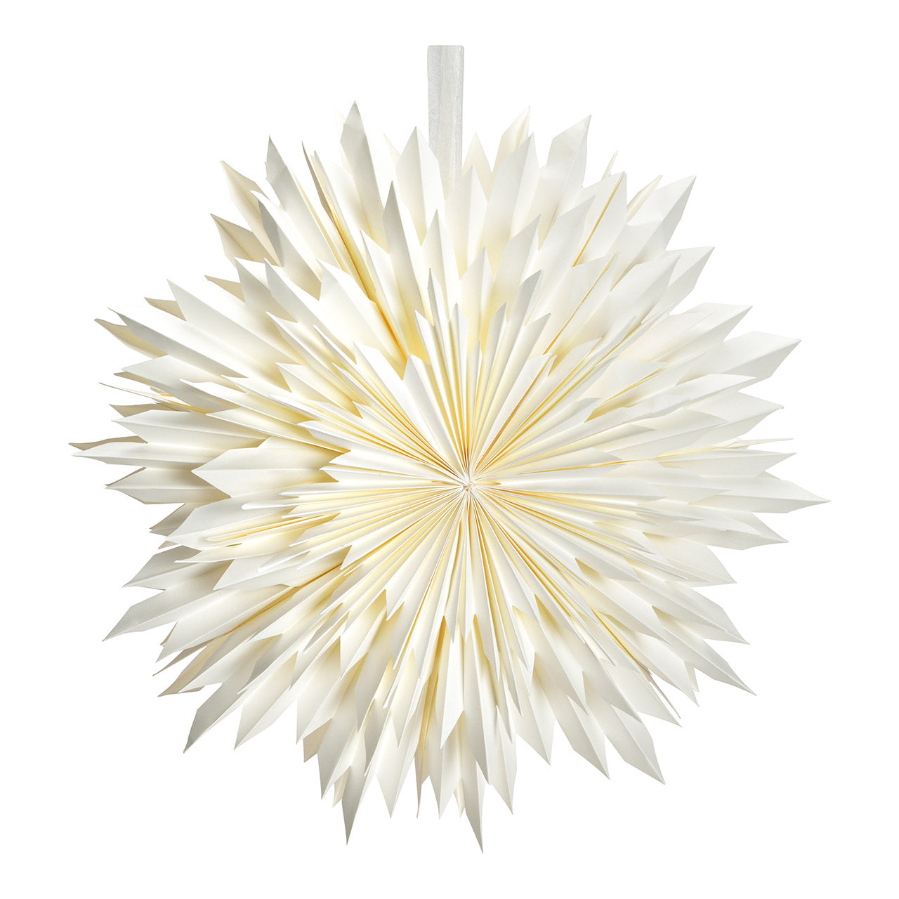 Illuminated snowflake made of paper/cardboard in white, Ø50cm. Color: White, Material: Paper/Cardboard, Country of Origin: IN. Product Safety Data Sheet: [link]