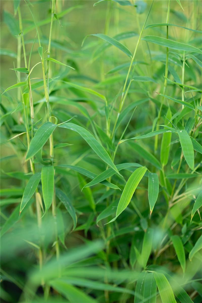 Schirmbambus ist ein horstbildend und überhängend wachsender Großstrauch, der eine Höhe von 3 - 4 m und eine Breite von 3 - 4 m erreichen kann. In der Regel wächst er 1 - 1,5 m pro Jahr.