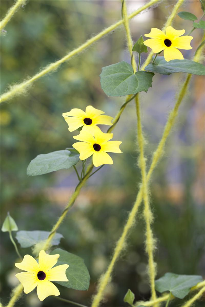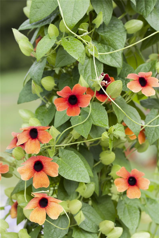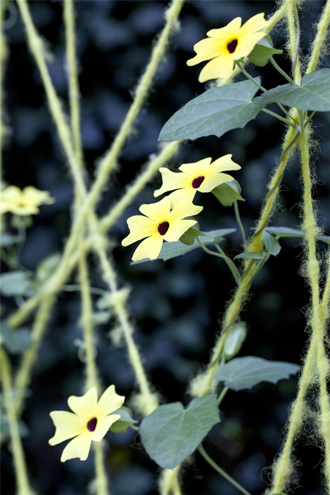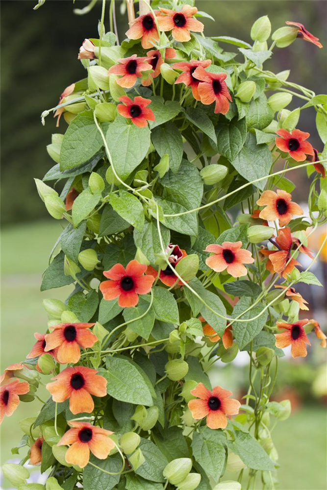 Die Schwarzäugige Susanne (Thunbergia alata) ist eine beliebte Pflanze für den Balkon. Die unzähligen Blüten erscheinen, je nach Sorte, in verschiedenen Farben die ganze Saison hindurch. Ein sonniger bis halbschattiger Standort und ein durchlässiges Substrat werden bevorzugt.
