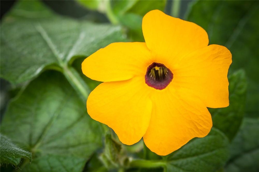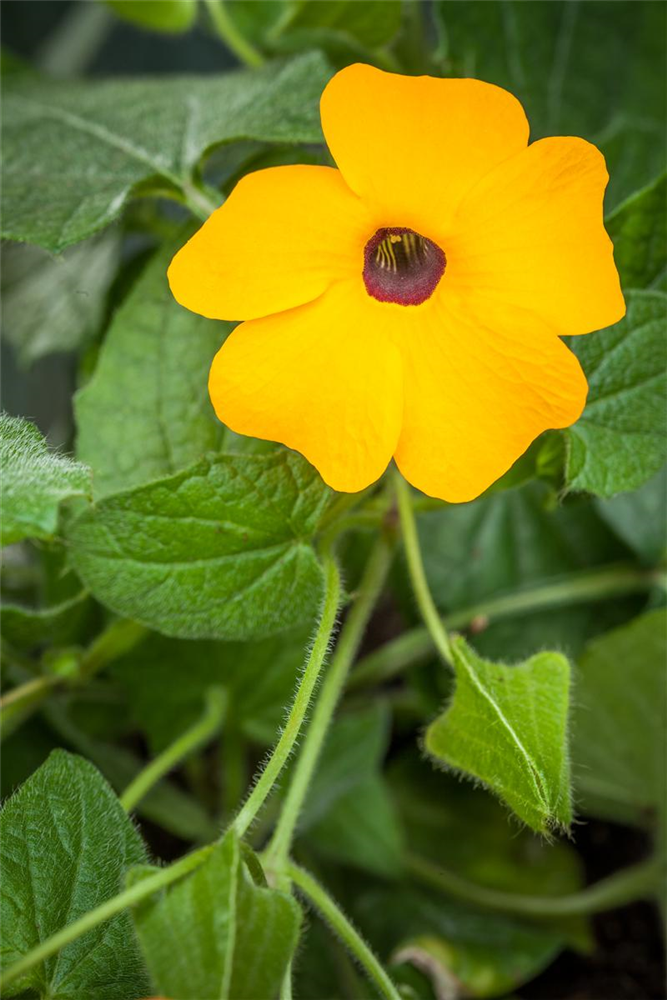 Die Blätter der Schwarzäugige Susanne sind mittelgrün, herzförmig.