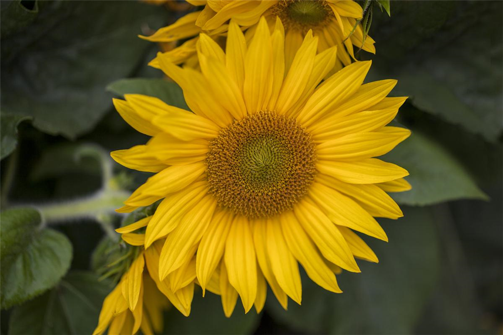 Helianthus annuus bildet während der gesamten Saison zahlreiche körbchenartige, gelbe Blüten. Diese werden etwa 10 - 40 cm groß.