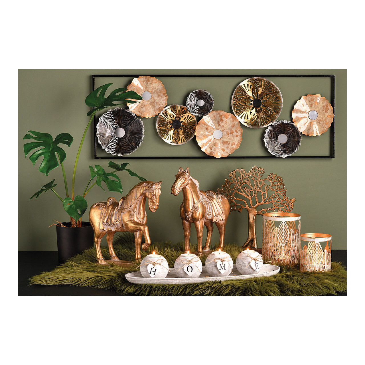 Tealight holder set of 4 on tray with stones HOME, made of MDF White (W/H/D) 50x10x18cm
