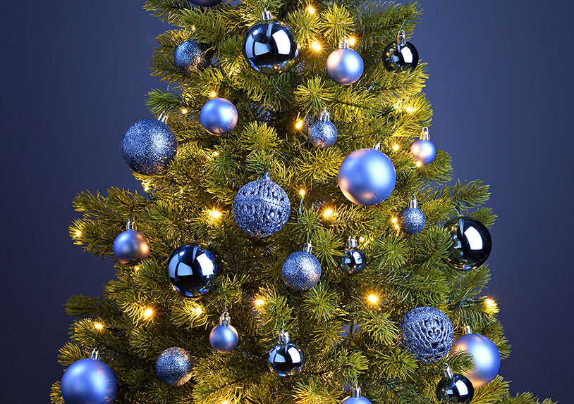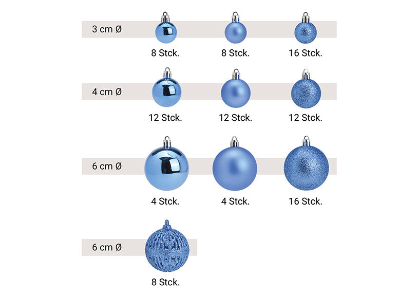 Weihnachtskugeln aus Kunststoff, 100er-Set, Königsblau, Ø3/4/6cm (B/H/T) 23x35x12cm