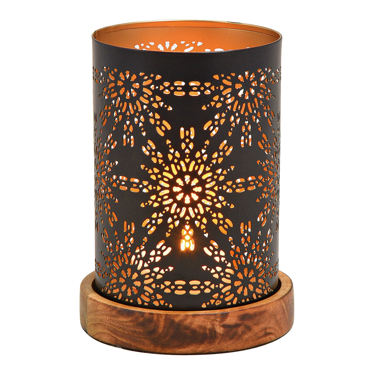 Schwarz Metallblumendekor auf Holzsockel Windlicht (B/H/T) 10x18x10cm. Mit stilvollem Design und hochwertigen Materialien. Hergestellt in Indien. Produkt-Sicherheitsdatenblatt verfügbar unter: https://nextcloud.wurm.com/apps/psds/Documents/10030504.pdf. Qualitativ, sicher und elegant für Ihr Zuhause.